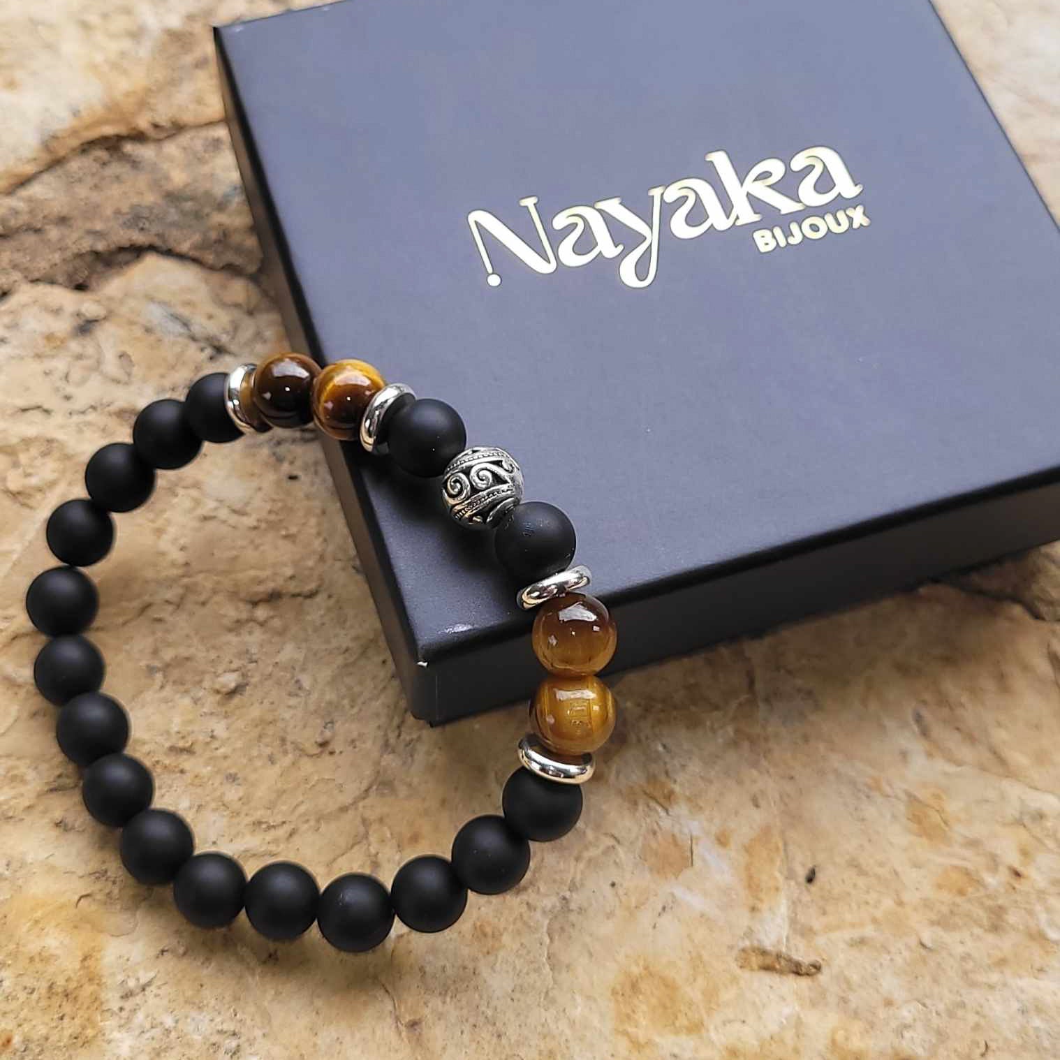 Très beau bracelet conçu sur mesure pour homme en pierres naturelles d'oeil de tigre et agate noire. Haute qualité et haute résistance. Bijoux fait main en France
